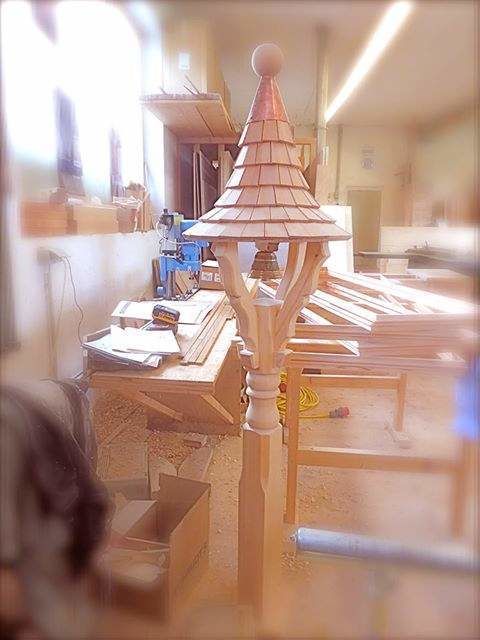 Der Glockenstuhl ist typisch für das Tiroler Land. Unser Schreiner hat uns nun auch einen schönen gebaut. Wenn die Glockenstühle heute meist nur mehr als Verzierung von Bauernhöfen, Landhäusern, Gartenhäuschen usw. dienen, so hatten sie früher eine ganz praktische Bedeutung: Sie dienten dazu, die Bauersleute, Knechte und Mägde auf den Feldern und im Wald zum Essen zu rufen. Jeder Hof hatte einen eigenen Glockenton und so wusste man sofort, wo gerade "Essen geläutet" wurde.
