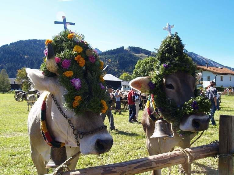 Nur wenn alle Tiere den Sommer auf der Alm gesund überstanden haben, werden diese für den Abtrieb mit Kränzen und Glocken geschmückt.